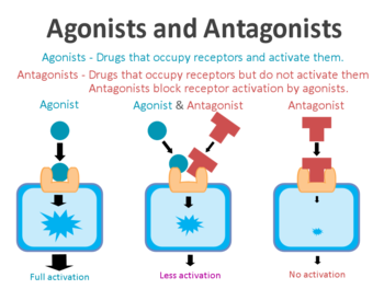 A receptor antagonist is a chemical that binds to a receptor of a cell, but does not trigger a response by that cell. Antagonists have affinity towards binding to the receptors they target, but no efficacy to activate the receptor.[1][2] Receptor antagonists have no activity in the absence of a receptor agonist; however, the binding of a receptor antagonist will disrupt the interaction and inhibit the function of an agonist or inverse agonist at receptors.
